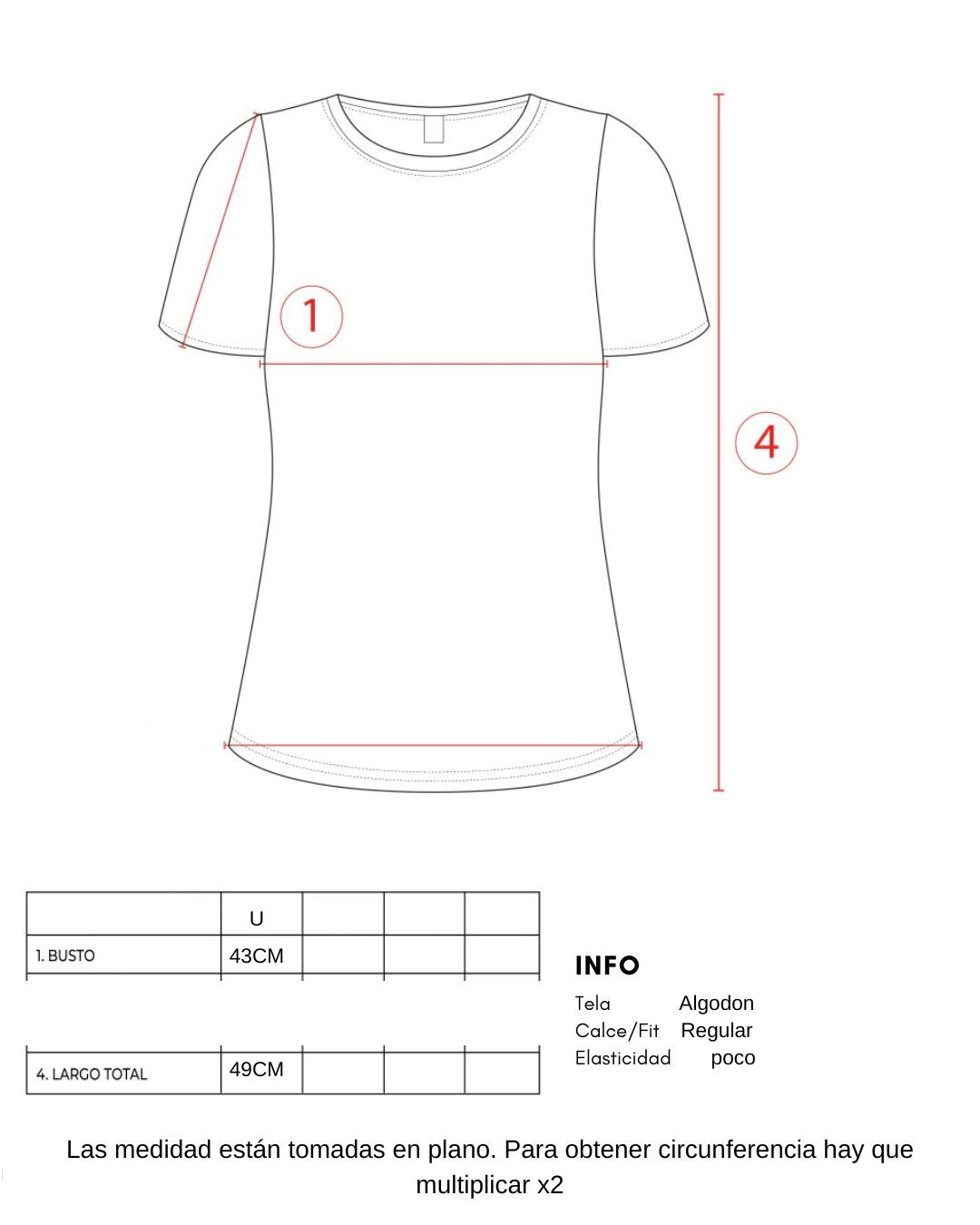 - Medidas (superficie plana): Ancho de busto: 43 cm/ Largo: 49 cm